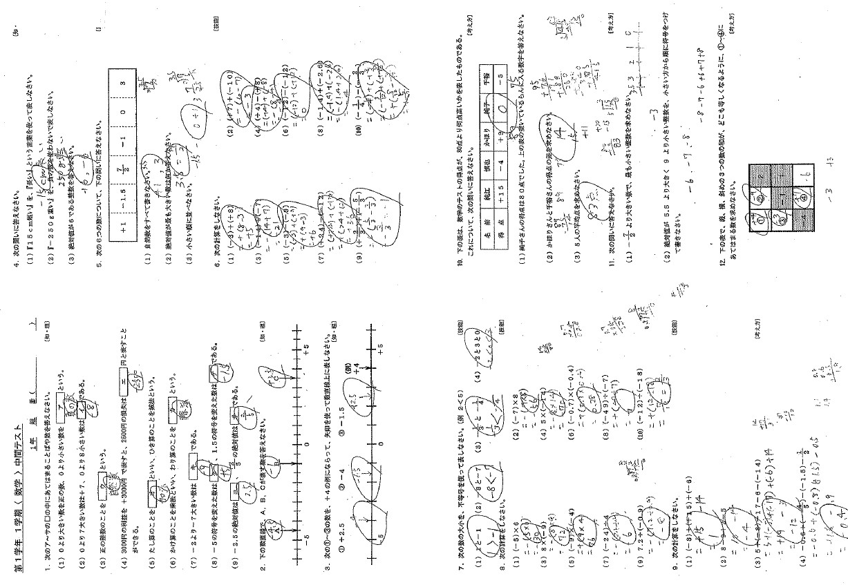 正負の数(1学期中間テスト)