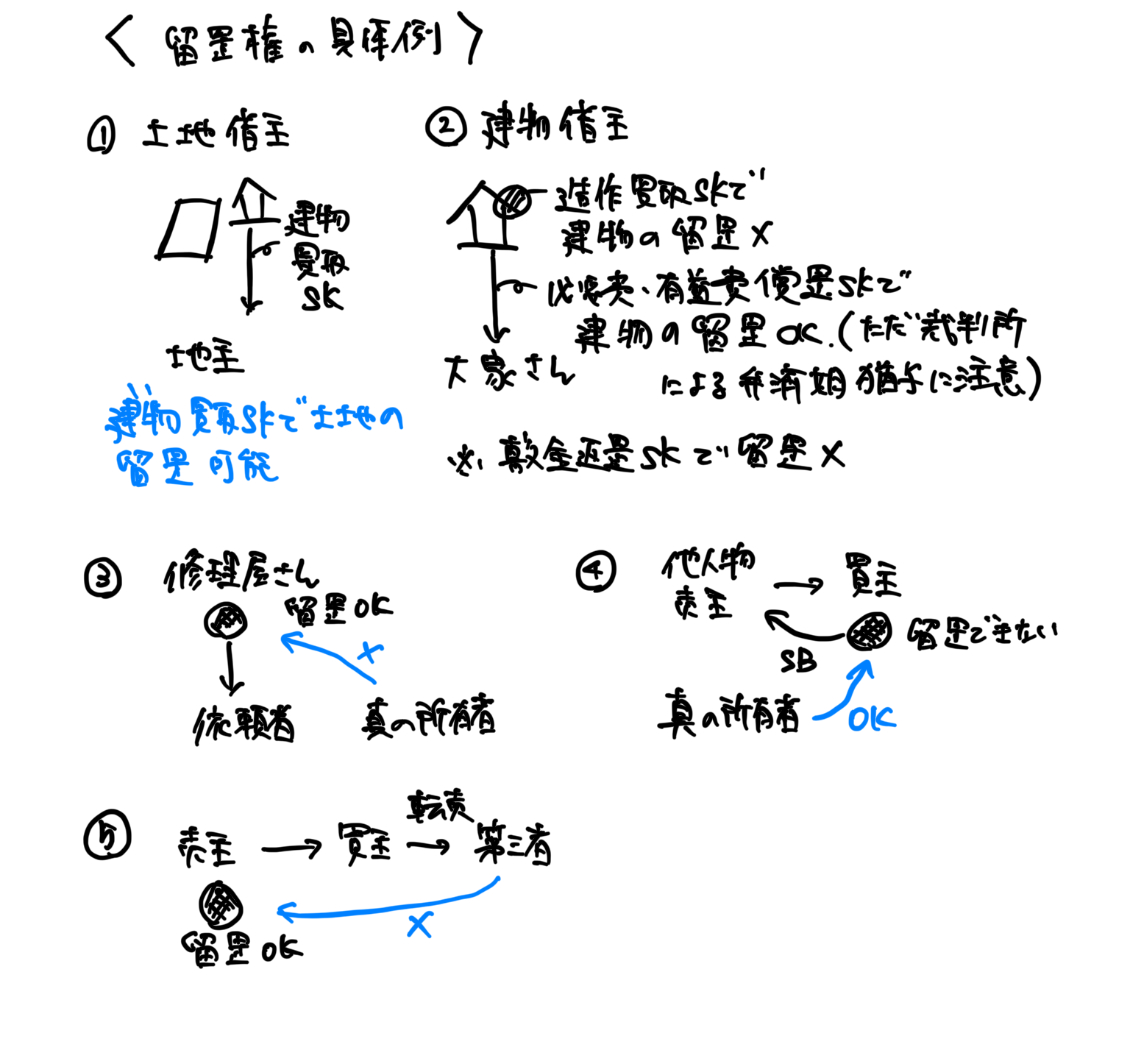 「留置権」:他人の物を合法的に人質にとっている権利。