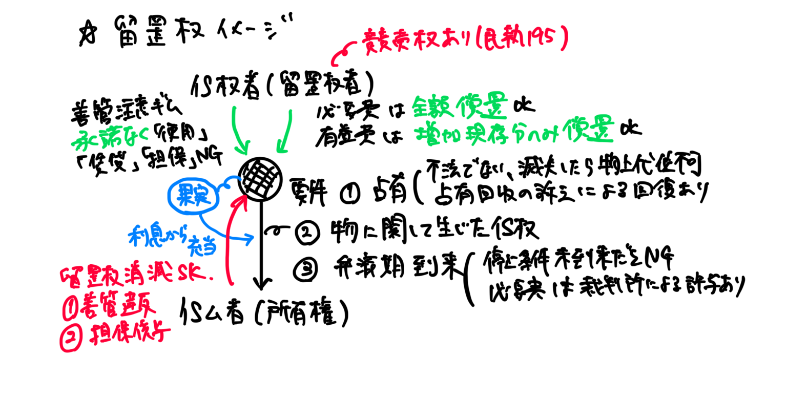 「留置権」:他人の物を合法的に人質にとっている権利。