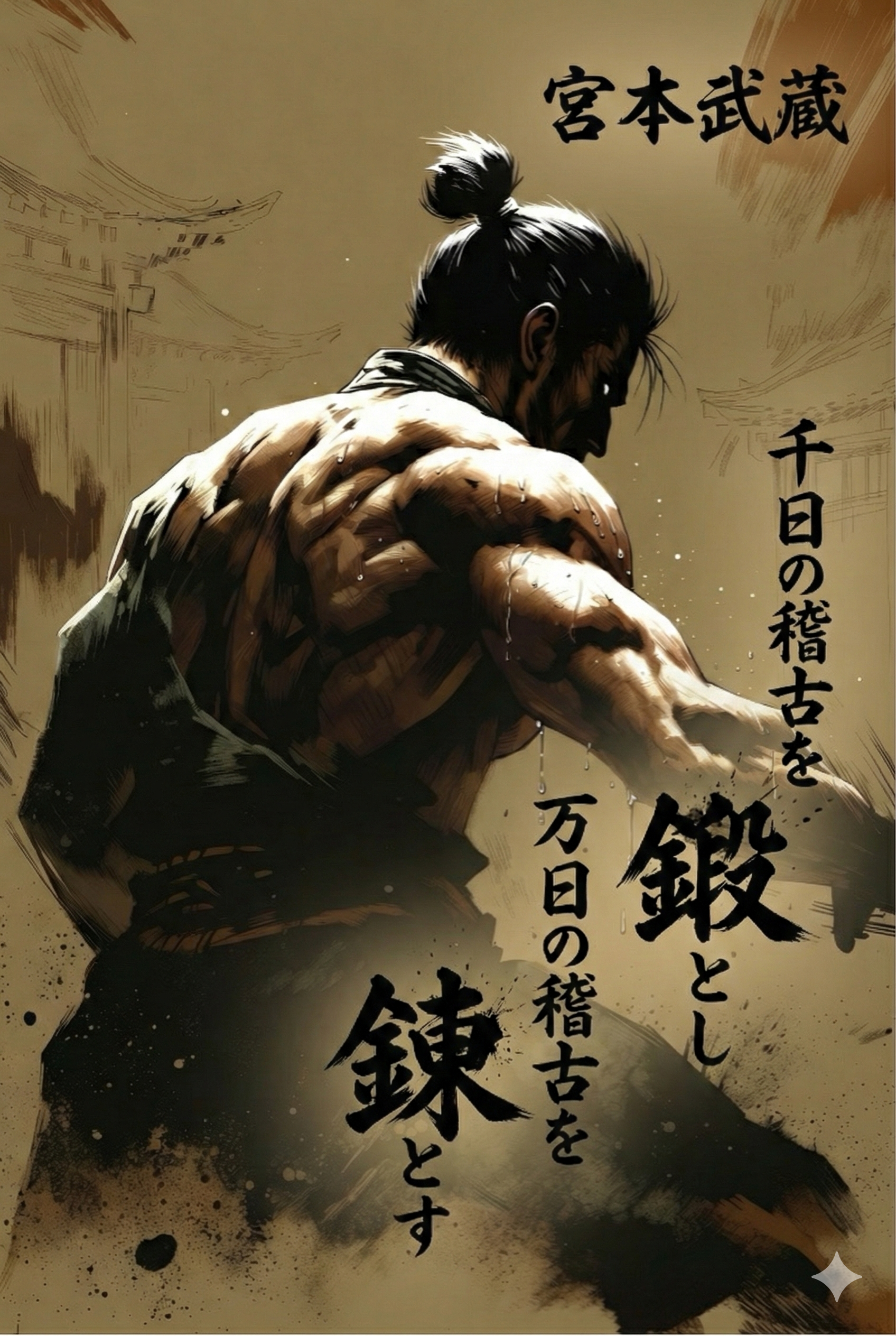 宮本武蔵の名言画像「千日の稽古を鍛とし、万日の稽古を錬とす」