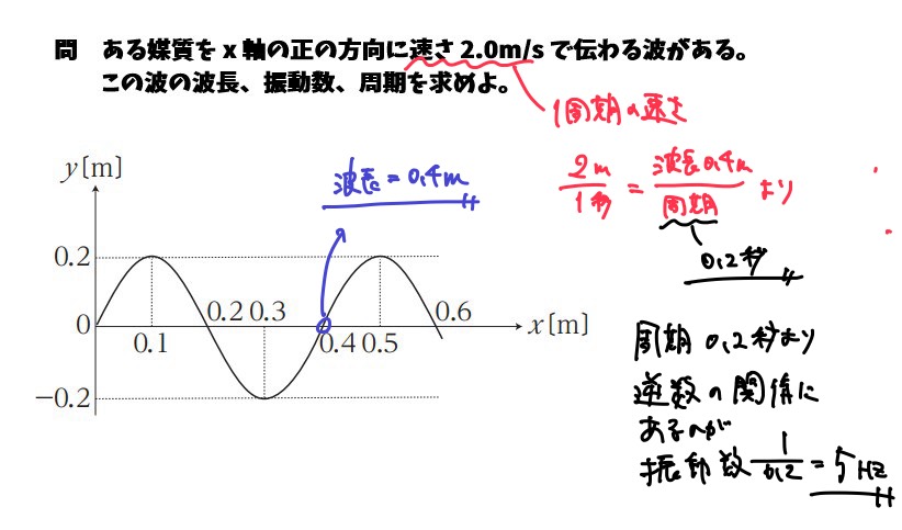 =振動数(1秒あたり何回の周期が繰り返されるか)×波長(繰り返される1周期で何mか)